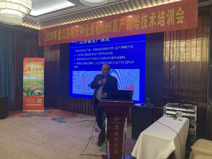 5月4日—5日,我公司水稻新品種淮稻268高產(chǎn)栽培技術(shù)培訓(xùn)會在淮安市迎賓館成功召開。淮陰農(nóng)科所水稻育種家袁彩勇主任、江蘇農(nóng)業(yè)科技報唐建明主編、常規(guī)稻麥?zhǔn)聵I(yè)部韓國標(biāo)部長及蘇北各縣區(qū)代理商、種田大戶70多人參加此次會議。