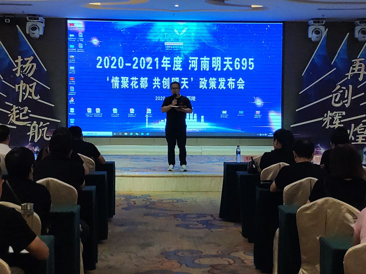 會上,由河南明天總經(jīng)理劉路坡向河南的合作伙伴們隆重的詳細(xì)發(fā)布2020-2021年度的營銷政策。