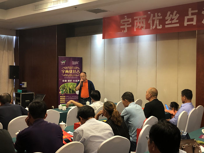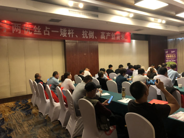 此次會(huì)議分為“品種特征特性介紹”、 “后續(xù)品種介紹”兩部分。會(huì)議首先對各遠(yuǎn)道而來的客人表示熱烈歡迎,并希望宇兩優(yōu)絲占的推廣能夠?yàn)榻K雜交水稻產(chǎn)業(yè)發(fā)展做出新貢獻(xiàn),為各核心代理商帶來新的機(jī)遇。