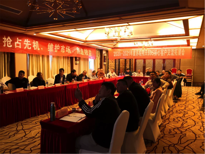 2020年是一個大災之年,但是明天695憑借著優異的表現,在逆境中乘風破浪,逆勢起航,在黃淮海區域得到了廣泛的贊同和認可。于是在農忙結束之際,蘇皖明天團隊為了維護明天695市場的穩定運行,迅速邀請明天695核心客戶召開交流會,本次會議中蘇皖共計40位客戶出席并進行指導工作。