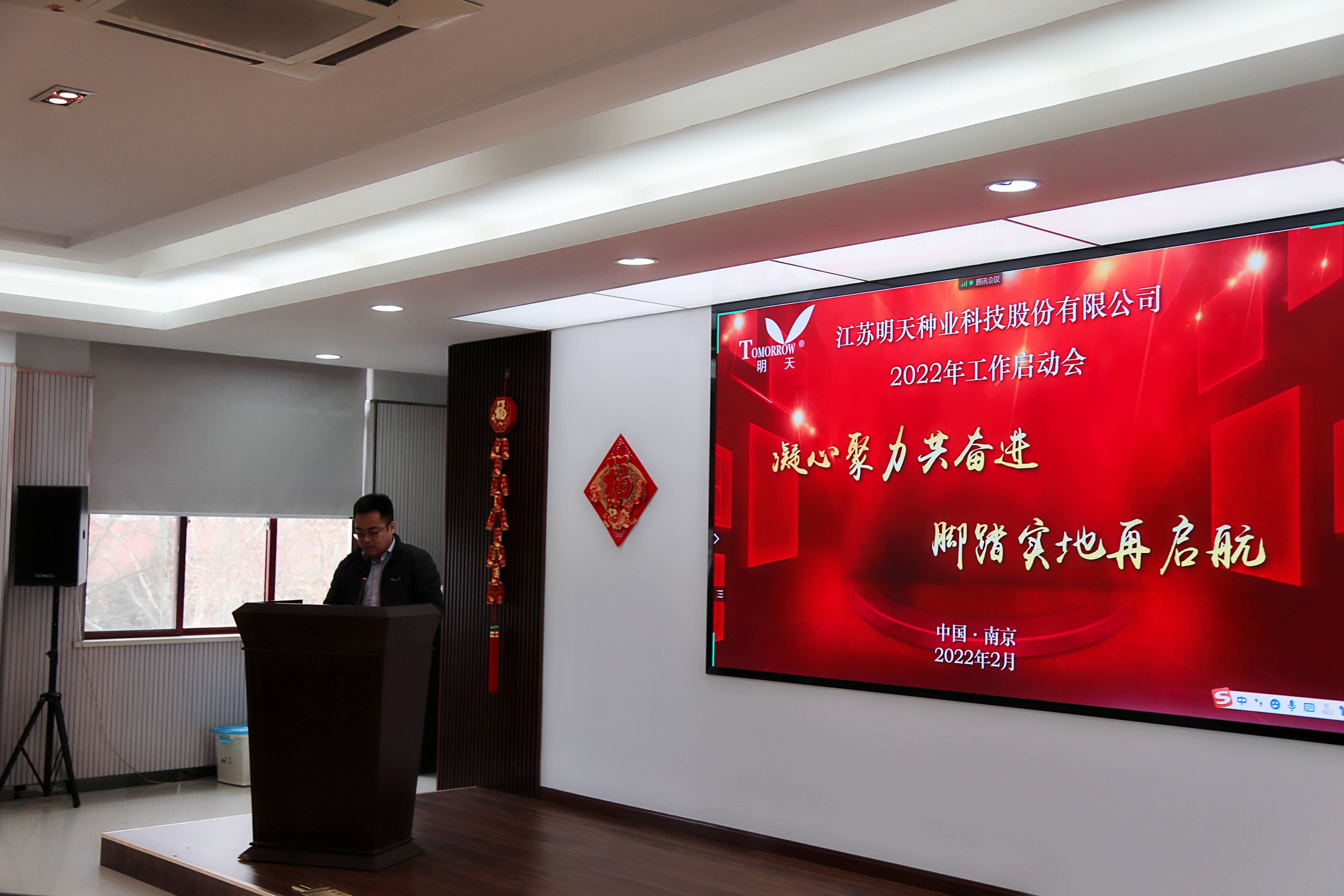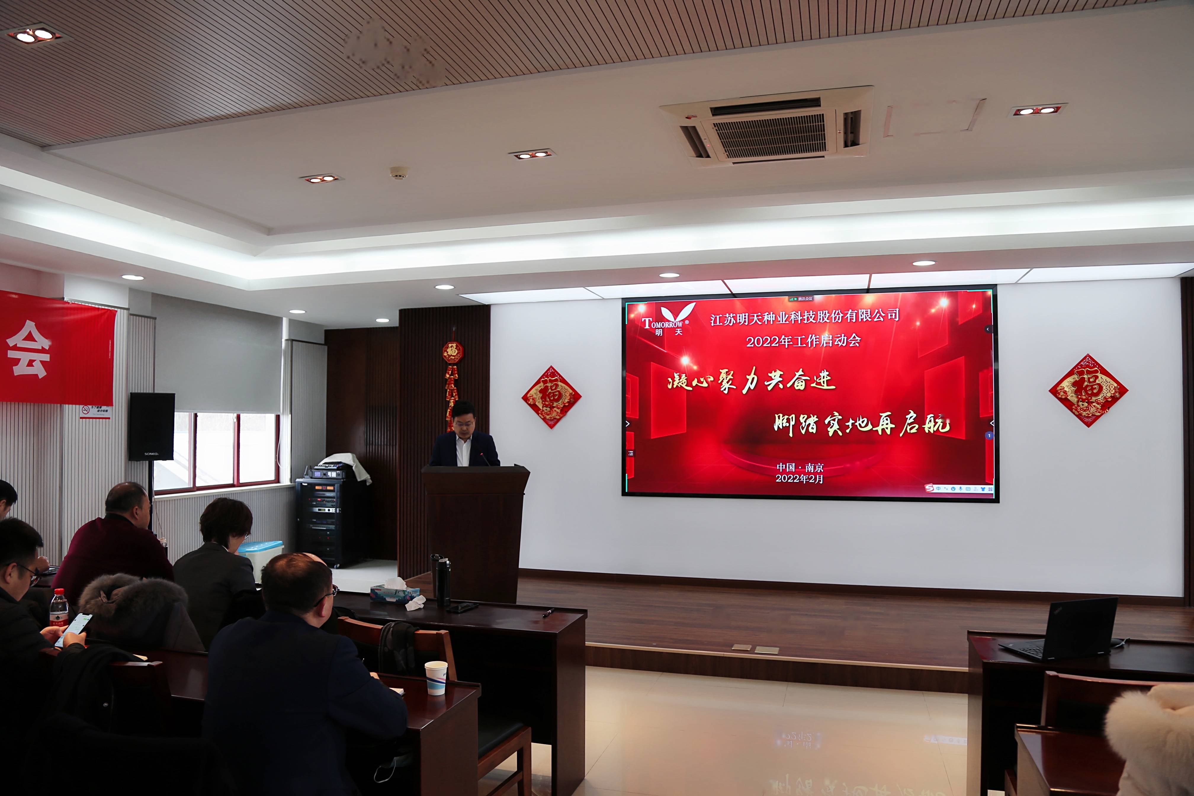 萬(wàn)物逢春可復(fù)蘇,天道酬勤鑄不凡!新年伊始,為淡化節(jié)日氛圍,盡快投入工作狀態(tài),2月17日,明天種業(yè)在江蘇省農(nóng)科院糧食所會(huì)議室召開(kāi)了2022年工作啟動(dòng)大會(huì),會(huì)議由副總經(jīng)理胡玉成主持,嚴(yán)輝民總經(jīng)理作了“凝心聚力共奮進(jìn)·腳踏實(shí)地再起航”的動(dòng)員報(bào)告。公司全體員工、子公司經(jīng)理層及2021年度先進(jìn)和優(yōu)秀員工參加了本次會(huì)議。