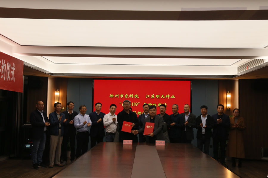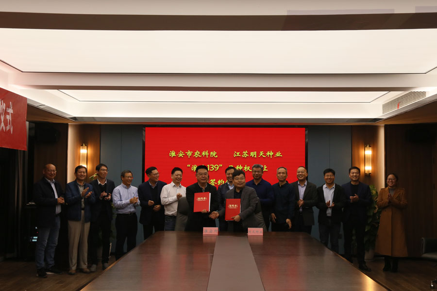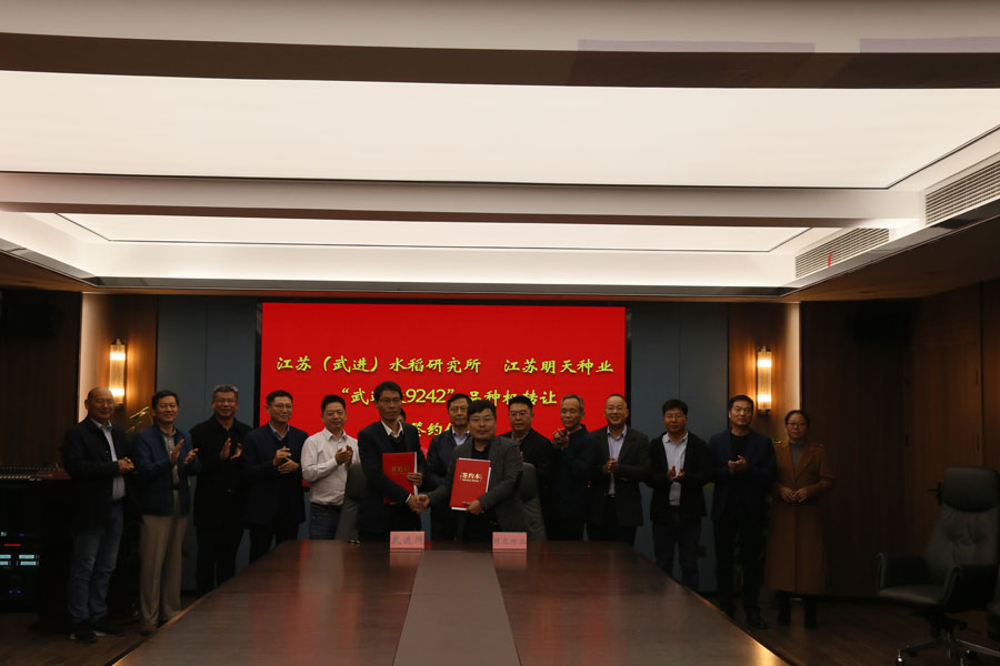 11月25日下午,江蘇明天種業(yè)與淮安市農(nóng)科院、徐州市農(nóng)科院、江蘇(武進(jìn))水稻研究所在公司會(huì)議室,就“淮麥139”、“徐稻119”、“武運(yùn)粳9242”隆重舉行轉(zhuǎn)讓簽約儀式。江蘇明天種業(yè)成功簽約以上三個(gè)品種全國(guó)獨(dú)占實(shí)施許可經(jīng)營(yíng)權(quán)。江蘇省農(nóng)業(yè)農(nóng)村廳、江蘇省農(nóng)業(yè)科學(xué)院、淮安市農(nóng)業(yè)科學(xué)院、徐州市農(nóng)業(yè)科學(xué)院、江蘇(武進(jìn))水稻研究所等領(lǐng)導(dǎo)、專家到會(huì)見(jiàn)證。會(huì)議由江蘇明天種業(yè)科技股份有限公司嚴(yán)輝民總經(jīng)理主持。 簽約儀式上,育種團(tuán)隊(duì)代表淮安市農(nóng)科院楊子博主任、徐州市農(nóng)科院胡婷婷主任、武進(jìn)所朱邦輝副所長(zhǎng)分別就三個(gè)品種的育種思路及品種特性做了詳細(xì)的介紹;明天種業(yè)經(jīng)營(yíng)團(tuán)隊(duì)介紹了目前三個(gè)品種的試驗(yàn)示范情況以及品種的精準(zhǔn)定位和推廣思路,并表示與育種團(tuán)隊(duì)共同做大做強(qiáng)三個(gè)品種的決心。 淮安市農(nóng)科院彭杰書記、徐州市農(nóng)科院楊峰副院長(zhǎng)、武進(jìn)所徐玉峰所長(zhǎng)分別對(duì)明天種業(yè)團(tuán)隊(duì)給予高度贊揚(yáng),表示品種能簽約明天種業(yè)很是放心,此前明天種業(yè)與三家單位已有深厚的合作基礎(chǔ),成功建立了良好的合作模式,相信此次合作在目前種業(yè)大環(huán)境下將產(chǎn)生里程碑的意義。 與會(huì)的江蘇省農(nóng)科院劉賢金副院長(zhǎng)、江蘇省農(nóng)業(yè)農(nóng)村廳種業(yè)管理處馬愛(ài)京處長(zhǎng)、種子管理站何金龍站長(zhǎng)、南繁南鑒站許明站長(zhǎng)分別對(duì)三個(gè)品種的合作表示祝賀,也表示根據(jù)中央一號(hào)文件中提出的全面實(shí)施種業(yè)振興、加快打造種業(yè)振興骨干力量的要求,明天種業(yè)作為農(nóng)業(yè)農(nóng)村部遴選的國(guó)家種業(yè)陣型企業(yè)應(yīng)有所擔(dān)當(dāng),將以此次科企合作作為新的起點(diǎn),創(chuàng)新思路,大膽開(kāi)拓,引領(lǐng)江蘇種業(yè)邁入更高的臺(tái)階。 江蘇省農(nóng)業(yè)農(nóng)村廳俞衛(wèi)東二級(jí)巡視員對(duì)此次合作雙方表示祝賀,對(duì)科企合作的模式給予充分肯定,并指出江蘇省農(nóng)業(yè)農(nóng)村廳種業(yè)處、種子管理站及南繁南鑒站作為種子服務(wù)部門,應(yīng)加強(qiáng)服務(wù)意識(shí),聯(lián)合更多省內(nèi)科研和企業(yè)力量,將此合作模式在省內(nèi)大力推廣,同時(shí)勉勵(lì)明天種業(yè)要與育種單位,要共同對(duì)這些好品種研究配套的高產(chǎn)優(yōu)質(zhì)栽培方法;要結(jié)合推廣部門建好高產(chǎn)示范方,盡快加大推廣力度。推動(dòng)江蘇稻麥產(chǎn)業(yè)的發(fā)展,共同為保障江蘇及國(guó)家糧食安全、農(nóng)民增收作出貢獻(xiàn)。 淮安市農(nóng)業(yè)科學(xué)院顧正中研究員、江蘇(武進(jìn))水稻研究所徐曉杰書記、江蘇明天種業(yè)科技股份有限公司副總經(jīng)理王波、徐江、師洪飛、總經(jīng)理助理韓國(guó)標(biāo)等相關(guān)領(lǐng)導(dǎo)、專家參加此次會(huì)議。