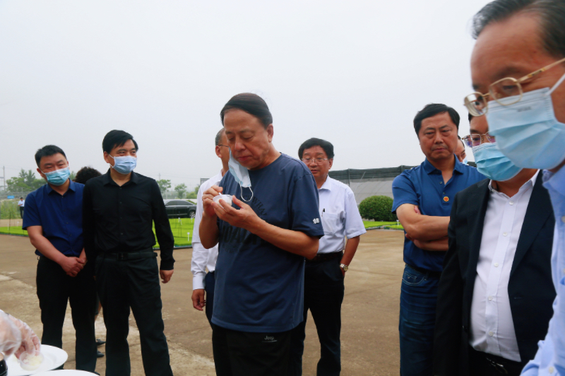 武維華考察了公司科研基地無土硬質化育秧,通過展示牌了解了公司近年來在植物新品種保護方面做得工作和成效,詢問了公司近年來發展情況以及未來規劃、科技創新及科企合作情況,鑒定品嘗了公司自主選育的優質秈米和粳米。他充分肯定了公司在植物新品種權保護方面所做的工作。他強調,企業在生產經營過程中,要嚴格按照《種子法》要求,進一步提高運用法治思維和法治方式推動現代種業高質量發展的能力和水平。他希望,企業要通過深入貫徹實施種子法,加強種質資源保護利用,提升種業自主創新能力,為保障國家糧食安全作出新的更大貢獻。